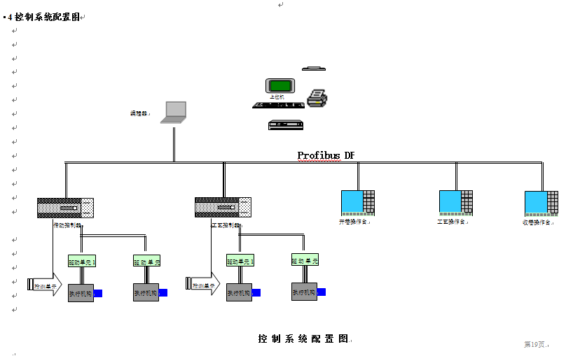 各运行模块的触摸屏接受外部的所有控制信号:包括运行参数、起动和停止命令、电磁阀动作命令等;同时各设备的运行状态也通过PLC传递给触摸屏,触摸屏进行显示和监视,并发出报警信号。触摸屏通过PROFIBUS网络进行数据通讯,以记录生产数据,实时显示系统运行状态实或进行设备的参数调整。PLC接受触摸屏的控制信号和控制量对各设备进行控制,保证生产线的运行。